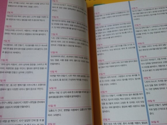 이 책 첫장을 넘기면 눈에 확들어오는 미술을 못하는 나자신에게도 설레게 만드는 엄마표 미술이 가능한 30일 플랜이 너무 잘 짜여져 있다