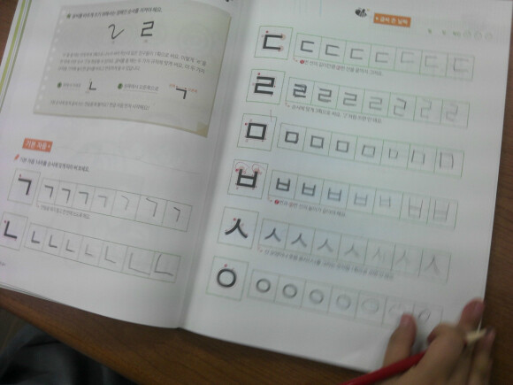 순서에 맞게 자음,쌍자음 쓰기를 해본다