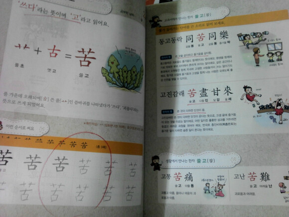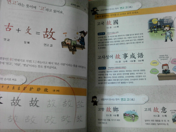 교과서에서 만나는 한자를 큰 소리로 읽어본다