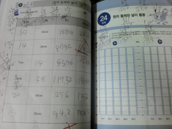 이제 도형의 계산을 할 수 있다고 하여 다시 6학년 교재로 시작해보았다