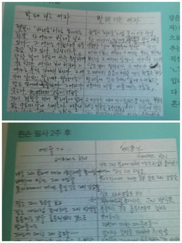 저자는 왼손 필사 첫날과 2주후 모습을 올려뒀는데