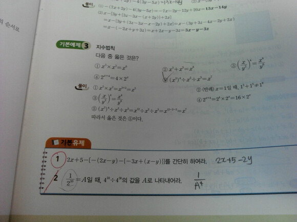 수와 식에서 중학교 때 배웠던 개념정리를 먼저 하고