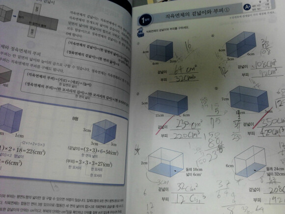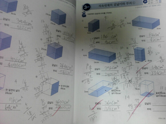 틀린 문제를 보면 겉넓이구하는 문제에서 틀리고 있는것을 볼 수 있는데