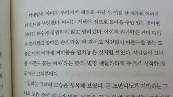 1963년 시칠리아의 귀족가문인 알팔리페가의 가정부 멘눌라라가 죽었다. 고작 '아몬드를 줍는 여자'라는 뜻을 지닌 '멘눌라라''라는 이름을 지닌 여인의 죽음이 뭐 대수일까 싶지만 40년 동안 알팔리페가의 가정부였지만 재산관리인으로 사실상 주인보다 더 주인같이 살아온 여인의 죽음으로 알팔리페가의 자손들은 발등에 불이 떨어졌다. 과연 그녀가 관리해온 알팔리페가의 재산은 어디에 있는 것일까.