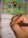중간 중간 만화의 내용을 퀴즈로 바꾸어 소유격과 How, What, 현재진행형 등 외어야 할 중요한 부분들은 문제를 풀며 익히게 하고