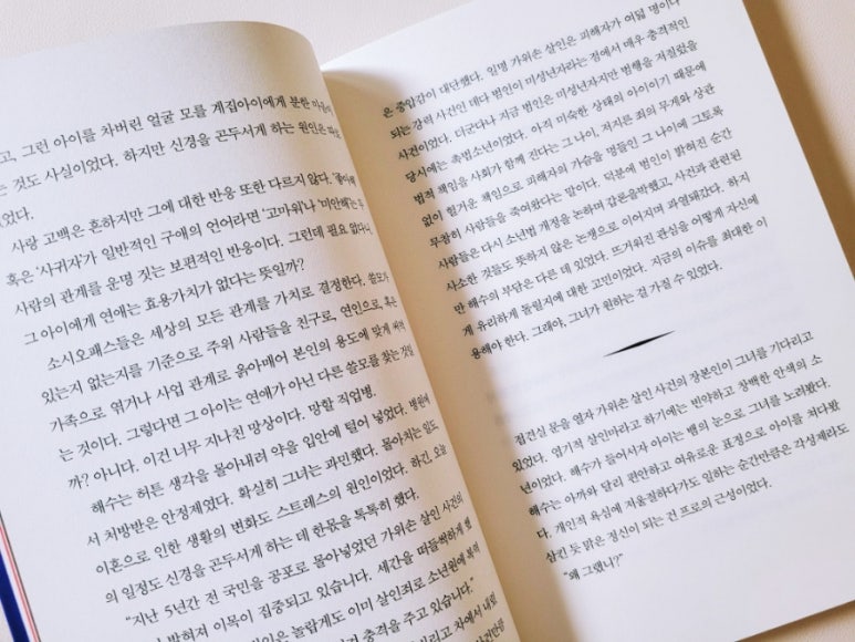표지 속 네 명의 인물이 그려져 있지만 단 한 명도 얼굴이 완전히 보이는 이가 없다. 특히나 세 명은 등을 돌린 채이며 한 명은 커튼 뒤로 몰래 훔쳐보는 듯한 분위기라 빨강과 파랑이 주를 이루는 색감 속에서 묘한 긴장감을 자아낸다. 특히나 이 작품은 학교에서 발생한 살인 사건을 다룬 학원 미스터리 서스펜스라는 점에서 흥미를 더하는데 등장인물이자 주인공격인 강해수라는 인물이 대한민국을 대표하는 1세대 프로파일러로 등장한다는 점에서 어떤 스토리가 진행될지 기대된다.해수는 자신의 분야에서 입지전적인 인물일 것이다. 올해 가장 주목할만한 여성 리더 10인에 선정된 대한민국의 대표 프로파일러이기 때문이다. 그만큼 큰 야망을 간직한 해수는 남편과의 이혼을 하고 아들 도윤을 소위 명문 고등학교로 진학 보내게 된다. 하지만 그런 아들이 다니는 학교에서 살인 사건이 발생하면서 해수는 딜레마에 빠지게 된다. 해수는 처음 이 사건을 해결하는 것이 자신의 야망을 이루기 위한 방편으로써의 승진의 기회로 생각하지만 그녀의 의도와는 달리 사건 해결을 위해 증거를 모으면 모을수록 그 사건의 범인으로 지목되는 이가 자신의 아들이라는 것을 깨닫게 된다. 과연 이 사건의 진실은 무엇일까? 또 프로파일러와 엄마라는 각기 다른 역할 속 그녀는 과연 어떤 선택을 할 것인가. 해수가 그런 고민을 하는 와중 킬에이저라는 인물이 자신이 범인이라고 밝혀오면서 평소 소년범 전문 경찰 대외적으로 신임과 인기를 얻으며 성공가도를 달리던 그녀의 삶은 어떻게 될지도 흥미로운 가운데 또다른 사건의 중심축에는 도윤의 같은 학교 여학생인 이태은이라는 인물이 등장한다. 특히 태은과 그녀의 아버지 이용범은 전형적인 사이코패스 성향을 갖춘 인물이지만 그들은 자신의 성향을 철저히 감춘 채 살아가고 있고 태은은 자신이 이익을 위해 주변 사람들을 이용할 줄 안다. 그런 가운데 죽은 이는 태은과 함께 전교 회장에 출마한 준우라는 학생. 태은은 전교 회장이 되고자 도윤에겐 러닝메이트가 되기를, 준우에겐 사퇴하기를 바라는데 거절했던 준우가 다음 날 죽은 채로 발견되면서 교내에서 살인 사건이 발생하고 만 것이다. 어느 때부터인가 좋은 대학에 입학하기 위한 수시 전형을 위해 학종에 일종의 경력이자 경쟁력이 될만한 사항을 적어야 하는 우리 아이들. 그런 가운데 대한민국 입시 전쟁의 최고라고 할 수 있는 대치동을 중심으로 벌어지는 이야기는 소설이나 그 기저에 깔린 이야기는 지극히 현실적인 한 단면을 보게 되는 것 같아 과연 이 사건의 진실은 무엇이며 그 끝엔 뭐가 남을지가 궁금해 끝까지 몰입해 읽게 될 작품이라고 생각한다.- 출판사에서 도서를 제공받아 본인의 주관적인 견해에 의하여 리뷰를 작성했습니다.