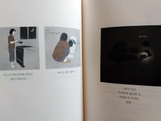가만히 생각해보면 진짜 힘들어서, 아이가 왜 우는지 몰라서 함께 앉아 울던 시절도 있었다. 마냥 이쁘기만 해서 키운다고 하기엔 더 큰 책임감이 필요했던 순간들을 절로 떠오르는 책이다. 책은 분명 힘든 순간들을 비교적 담담하게 담아내고 있고 또 아이로 인해서 행복했던 순간들도 많이 담아낸다.