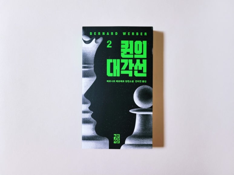 천재 이야기꾼이라는 생각이 들 정도로 어떻게 이런 다양한 분야에 걸친 소재들을 활용해 글을 쓸까 싶은 베르나르 베르베르의 작품 『퀸의 대각선』은 총 2권으로 이뤄져 있고 1, 2권을 나란히 붙이면 멋진 체스판의 말이 되는 동시에 두 사람이 마주보고 있는 것 같은 모양새가 된다.