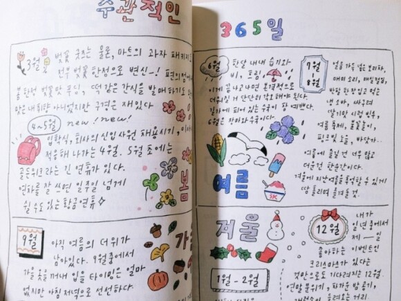 현재 일본에서는 4년째 거주중이며 그중 평범한 직장인으로 3년째라고 하는데 이 책에서는 그런 저자의 도쿄 생활기를 사계절 그림일기로 표현하고 있는데 이는 그래픽 디자인 관련 업무를 하고 있는 저자의 직업적 영향도 있어서 손으로 그리는 걸 좋아한다고.