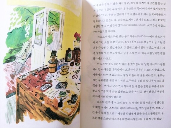 이외에도 버지니아 울프는 몽크하우스에서 오두막 집필실을 가졌고 제인 오스틴의 경우에는 초턴 집의 다이닝룸의 빛이 가장 잘 드는 창가의 십이각형 호두나무 테이블 위에서 집필활동을 했다고 하는데 뭔가 낭만적인 장면이 떠오른다.