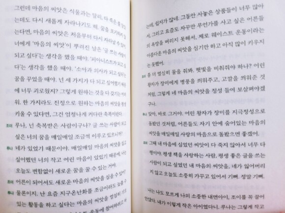 그렇기에 정여울 작가님이 말하는 내면아이가 지닌 눈부신 잠재력에 대한 이야기, 특히나 작가님이 내면아이를 만나게 된 계기가 어린 왕자를 통해서였고 그 내면아이에 '조이'라는 이름을 성인자아에는 '루나'라는 이름을 지어주면서 둘이 자연스레 대화를 해나가는 상황은 상당히 인상적으로 다가온다.