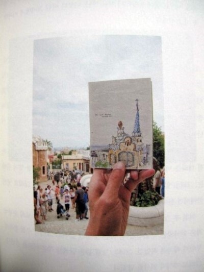 그려주는 대목도 흥미롭고 위의 사진에서처럼 풍경의 일부를 그려 실제 풍경 위에 살포시 얹는 느낌의 배치는 그림만 담은 페이지보다 의미있게