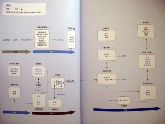 이름이 표시되어 있다. 여기에 더해서 철학자들 사이의 관계도 또한 의미있는데 다른 철학자에게 영향을 준 철학자라든가 반대로 비판을 한