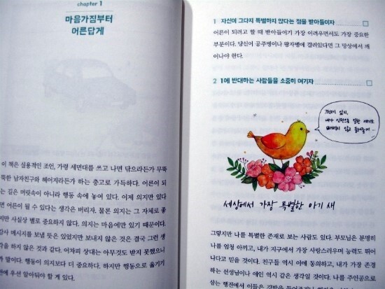 책은 마치 체크 리스트 같다. 매일매일 그날 해야 할 일을 목록에 적어서 해낼 때마다 체크 표시를 해본 적이 있을텐데 이 책에 담긴 내용들은 바로 그런 점에서 착안한 듯 어른답다고 불릴 수 있는 다양한 목록들이 나오는데 독자들은 읽어보고 원한다면 그 방법들을 실행해 보고 실행했다면 완료 표시를 할 수 있다.