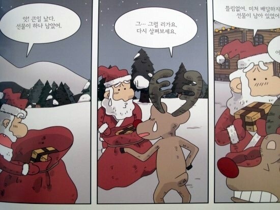 모두가 행복해야 할 크리스마스에 가족을 만나 행복한 시간을 보내게 된 차메이의 이야기가 그 어떤 선물보다 귀하게 느껴지는 이야기다. 무사히 배달을 마치고 산타 할아버지와 루돌프도 가족의 품으로 돌아옴으로써 끝난다.