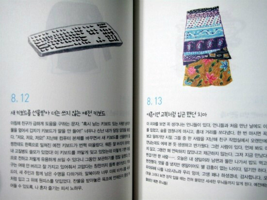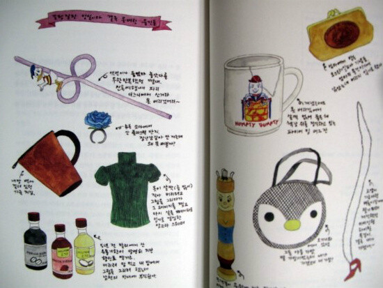 그래서 저자는 한가지 좋은 방법을 생각해낸다. 자신의 직업적 능력을 십분 발휘해서 버리는 물건을 일러스트를 남겨놓는 것이다. 그리고 그 물건에 얽힌 일화나 추억 등을 함께 적어 놓으면, 그 물건들을 버리더라도 추억까지 버리게 되는게 아니여서 나름의 해법이 되는 것이다.