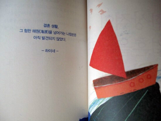 일명 '트위터 대통령'으로 불렸던 이외수 작가의 거침없는 말투가 고스란히 담겨져 있어서, 망설임없이 할말 다하는 그의 배포가 대단하다 싶기도 하고, 한편으로는 조금은 과격한 어투가 잔잔한 물속을 유영하는 물고기와 예쁜 그림과는 뭔가 언밸런스한 매력이 있기도 하고, 어쩌면 직설적인 이외수 작가의 글들을 정태련 화백이 조금은 순화시키고 완화시켜 주는게 아닐까 싶은 생각도 든다.