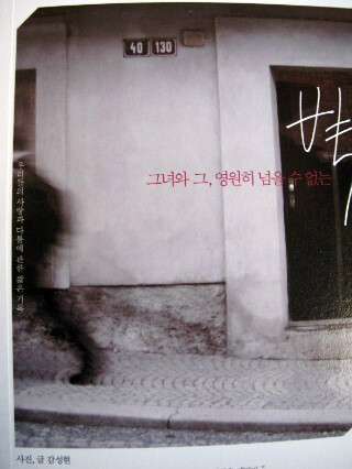 여러나라의 출입문을 찍은 사진을 표지에 실고 있는 책을 본적은 있어서도 이 책처럼 벽(壁)만 담고 있는 책은 처음인것 같다. 벽(壁)이라고 하면 바깥으로부터 나를 지켜주는 단단함이 떠오르는 동시에 바로 그 단단함이 때로는 상대와 나를 가로막는 이어지지 못하는 단절로 느껴지기도 하는데, 이 책은 남녀 사이에 존재하는 이별을 세계 각국의 벽(壁)을 통해서 실감하고 있는 것이다.