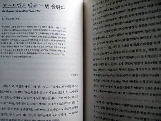 개인적으로는 이 책속에 수록된 작품들 중에서 『포스트맨은 벨을 두 번 울린다』가 너무 궁금했었다. 제목이 너무 독특해서 내용은 과연 어떤 이야기를 담고 있을까 내내 궁금하고 기대되었는데, 이 책속에서 만나게 되어 반가웠고 비평을 읽으니 원작도 꼭 읽어 보고 싶어진다.