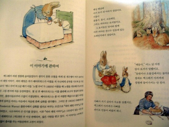 『피터 래빗 시리즈 전집』은 한국에서는 유일하게 그녀의 작품 전편을 한 권으로 엮었고 책에는 피터 래빗 시리즈 본편인 23편, 베아트릭스의 미출간작품 4편이 모두 수록되어 있는 아주 의미있는 책이 되겠다.귀여운 동물들이 풀어내는 재미난 이야기가 연도순으로 수록되어 있다. 책 곳곳에 삽화가 곁들여져 있어서 아주 예쁘고 사랑스러운 동화를 읽는 기분을 선사하는 매력이 있는 책이기도 하다.