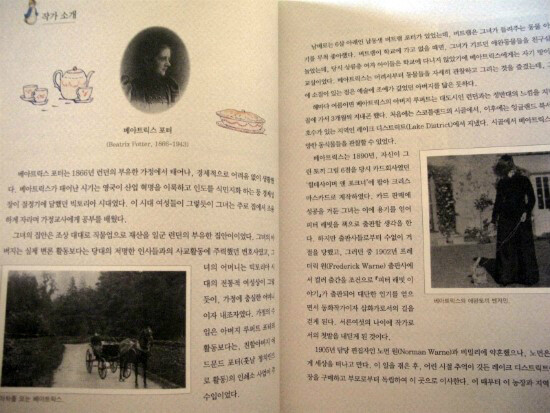 책의 초반에는 이 책의 저자인 베아트릭스 포터에 대한 이야기가 수록되어 있다. 그녀는 1866년 영국 런던의 부유한 법률가의 딸로 태어나 경제적인 어려움없이 생활하는데 그 당시의 상류층 자녀들이 그랬던 것처럼 그녀도 집에서 가정교사를 통해 공부를 배웠다.