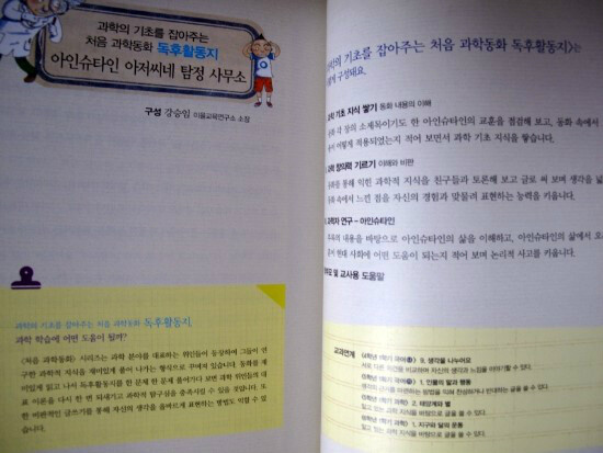 책의 후반부에는 상대성 이론을 만든 아인슈타인은 어떤 사람인지에 대해서 알려주는데 그의 어린시절과 학창시절, 여러 직업을 거쳐 교수로 재직하고 상대성 이론을 창시하기까지의 이야기가 적혀 있고 그 다음에는 '과학의 기초를 잡아주는 처음 과학동화 독후 활동지가 수록되어 있으니 재미있게 읽고 내용을 다시 한번 정리하면서 자신의 생각도 써볼 수 있을 것이다.