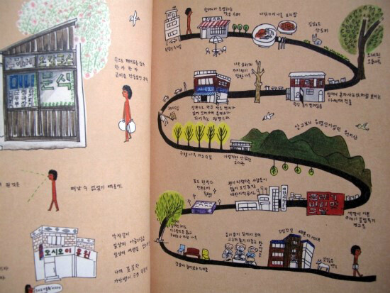 자동차를 이용해 빨리 달리면 볼 수 없는 것들을 오롯이 걷기 때문에 만나게 되는 풍경과 모습을 이다는 잘 캐치했던 특징있게 잘 표현하고 있는데 그림을 잘 그린다는 것을 알 수 있을 정도로 예쁘게 잘 묘사하고 있다.
