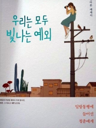 『우리는 모두 빛나는 예외』는 [대학내일]의 전아론 편집장이 펴낸 글이다. 저자는 이 책을 통해서 자신의 부족하고 모자람을 당당히 고백한다. 스스로가 꽤나 산만하다 말하며 집중력 부족은 심지어 자신의 오른쪽 발목의 빨간 점처럼 타고난 것이라고 이야기 한다.