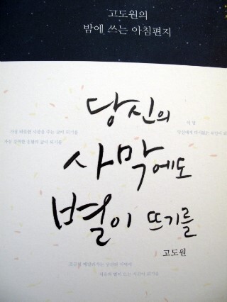 『당신의 사막에도 별이 뜨기를』역시도 그런 종류의 책으로 매일 아침 350만 명의 가슴을 깨우는 '고도원의 아침편지'에 바탕을 두고 있다.