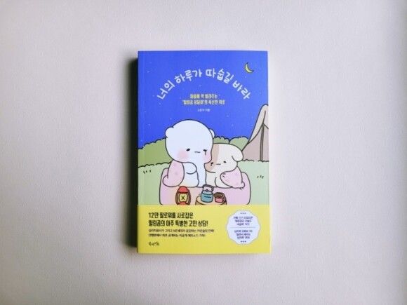 너무나 귀여운 캐릭터, 힐링곰 꽁달이를 등장시켜 마음에 상처를 입은 사람들에게 푹신한 위로를 전달하고 있는 책이 바로 『너의 하루가 따숩길 바라』이다. 흥미로운 점은 이 책의 작가는 인스타툰 작가이외에도 이모티콘 작가로서도 활동하고 있고 무엇보다도 대학에서는 아동 심리상담을 전공했으며 정신건강의학과에서 심리상담사로 일하고 있다는 사실이다.