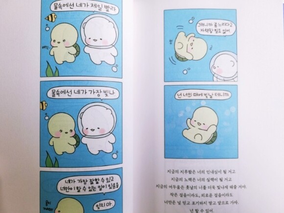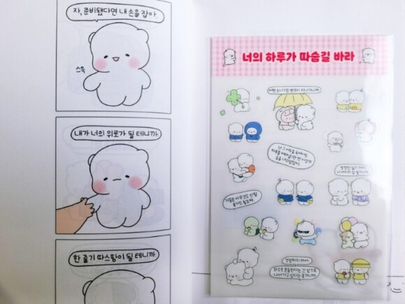또 앞서 이야기한대로 이모티콘 작가(카톡 인기 이모티콘 ‘힐링곰은 오늘도 따숩찌’ 작가)로도 활동하고 있는 작가님의 면모를 엿볼 수 있는 귀여운 힐링곰 꽁달이의 스티커도 수록되어 있으니 더욱 의미있는 선물이 될것 같다.