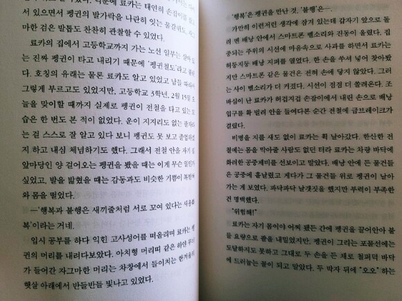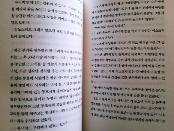 펭귄 한 마리와 역무원이 종점역에 있는 분실물센터를 찾아오는 사람들과의 이야기를 담아낸 책이라 과연 무엇을 분실했을까하는 궁금증을 자아내는데 예전에 TV에서 실제로 지하철 분실물 센터의 이야기를 다룬 책을 보았을 때 별의별개 다 있구나 싶었기에 이 책 역시나 여러모로 궁금했던것 같다.