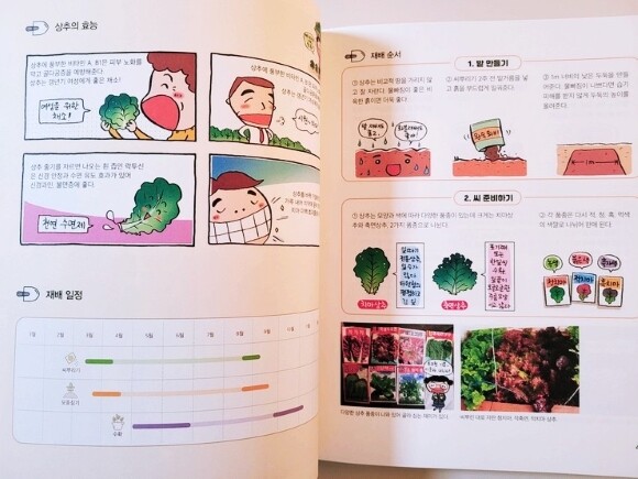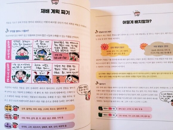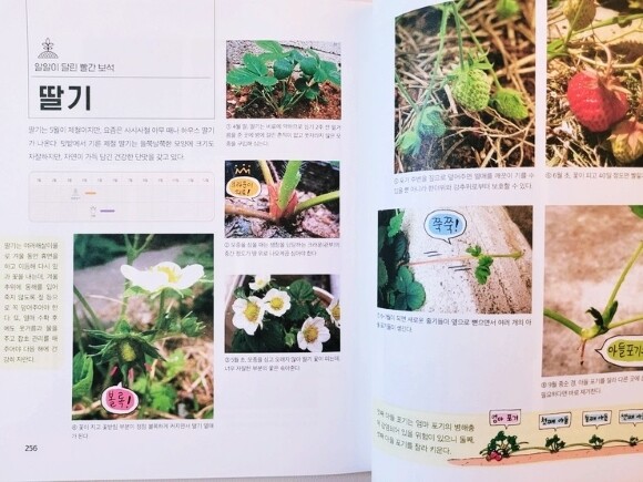 흔히들 제철 채소나 과일을 먹어야 좋다고 하는데 이 책은이 제철의 시기를 알려주고 성장 과정을 사진 이미지를 활용해서 시기별로 어떻게 성장해나가고 (예를 들면) 딸기 같은 경우에는 열매를 맺어가는 과정이 어떤지를 알려주기도 해서 책을 통해 자신의 텃밭 식물이 잘 자라고 있는지를 스스로 체크해볼 수 있어서 좋을것 같다.