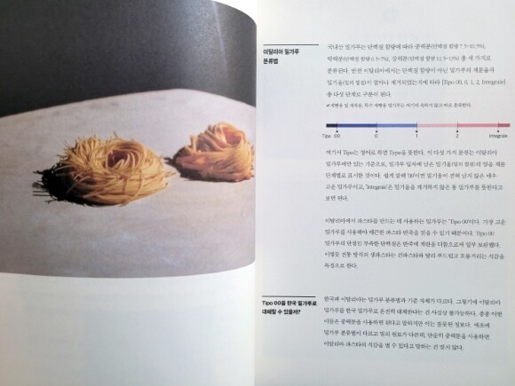 파스타를 만들어 먹긴 하지만 기성품을 활용한 조리만 할 뿐 면이나 소스를 직접 만들진 않기에 책에 소개되는 파스타 구분(생/건 파스타)이나 뇨끼라는 말도 상당히 낯설다. 게다가 유화라고 불리는 만테까레라는 말도 이 책을 통해 처음 들어 본 거나 마찬가지라 여러모로 생소하지만 유용한 정보를 많이 알아갈 수 있는 책이다.