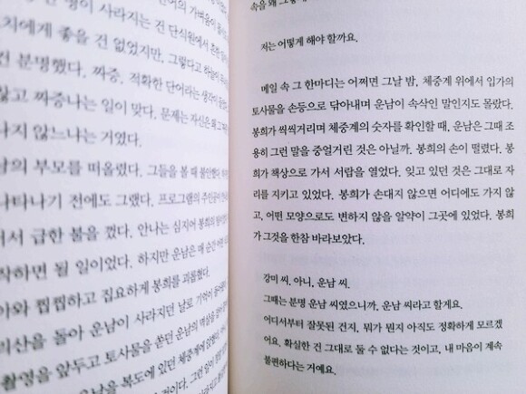 이 작품은 '제1회 넥서스 경장편 작가상 대상 수상작'이기도 한데 상당히 현실감 있는 소재가 눈길을 끌었던것 같다. 작품 속 주인공 양봉희는 거듭되는 입시와 취업의 실패를 뚱뚱한 몸에 있다고 생각하던 중 생산직에 취직을 하게 된다. 하지만 2교대로 끝나는 업무 환경은 자연스레 퇴근 후 먹는 것에서 낙을 찾게 하고 이는 곧 이전보다 더 많이 찌는 악순환을 불러 온다.