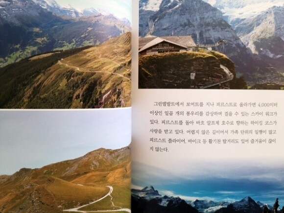 그래도 이후로 나오는 풍경들은 스위스하면 떠올릴만한 모습들이 많아서 역시나 멋지네 싶은 마음으로 사진 속으로 들어갈듯 가만히 바라보게 된다. 자신의 여행길, 그 여정에서 마주한 풍경과 경험한 것들, 느낌 감정들을 담아내고 있는 책은 조금이라도 많은 곳들을 사진으로 담아내고자 애쓴 작가님의 노고가 느껴질 정도이니 말이다.