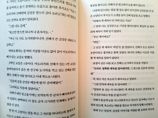 이렇게나 다른 두 사람이 만들어내는 이야기는 이미 폐간되어버린 도서신문을 다시 만들기 위한 프로젝트 속에서 그 신문에 실을 독서 감상문을 받기 위한 여러가지 에피소드들이 겹쳐지며 나름의 미스터리적 요소도 가미되어 극적인 재미를 더하는 작품이기도 하다. 뭔가 요네자와 호노부의 고전부 시리즈가 살짝 떠오르기도 하는 이야기여서 만약 고전부 시리즈를 재미있게 본 사람들이라면 더욱 즐겁게 접할 수 있는 작품일 것이다.