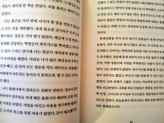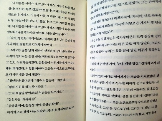 지옥 같은 현실에서 벗어날 수 있는 유일할지도 모를 기회를 얻은 아델라이다는 살아남기 위해 스페인 여자의 딸인 아우로라 페랄타가 되어야 했다. 일생일대의 기회 속에서 자신의 것이 아닌 여권을 가지고 그 여권의 주인공이 되어 그 사람인냥 해야 하는 아델라이다의 모습은 그래서인지 그 어떤 스릴러 소설보다 아슬아슬하고 무서운 동시에 주인공이 마지막까지 살아남아 해피엔딩을 맞아하길 바라게 되는지도 모르겠다.