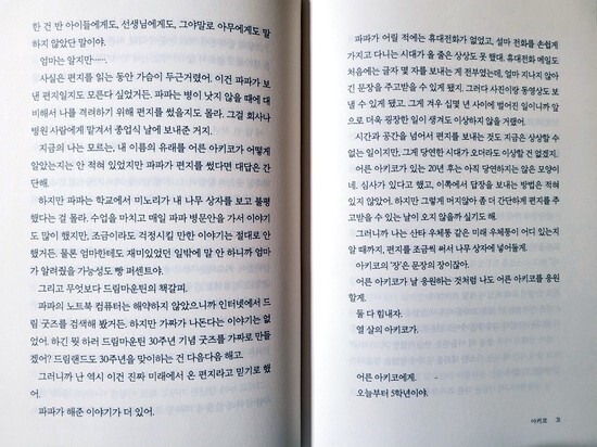 처음에는 아키코도 편지의 쓰여진대로 누군가의 장난이라 생각했을 것이다. 사실 소설이긴 하지만 이런 경우 처음부터 믿기란 쉽지 않으니 말이다. 그럼에도 불구하고 아키코는 그 편지에 답장을 쓰게 된다.