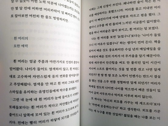 그리고 나이가 들면서 자연스레 찾아오는 신체적 변화, 그중에서도 가장 대표적일 흰머리에 대한 고민도 어떻게 받아들이느냐에 따라 충분히 괜찮을수도 있다는 생각으로 대하다보면 나이가 드는 것도 마냥 서글픈 일만은 아니겠구나 싶어진다.