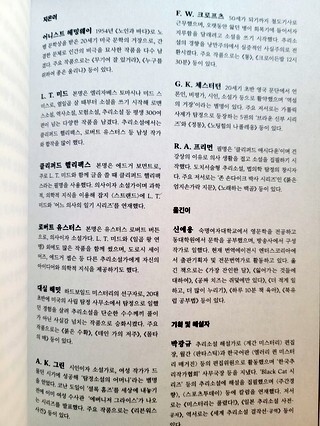 현대작가의 장르소설은 익숙하지만 이렇게 고전 추리소설의 경우에는 몇몇 작가를 제외하고는 낯선게 사실이여서 그런지 이번 기회를 통해 새로운 작가들의 신선한 작품들을 만나볼 수 있었던 점이 참 좋았다.