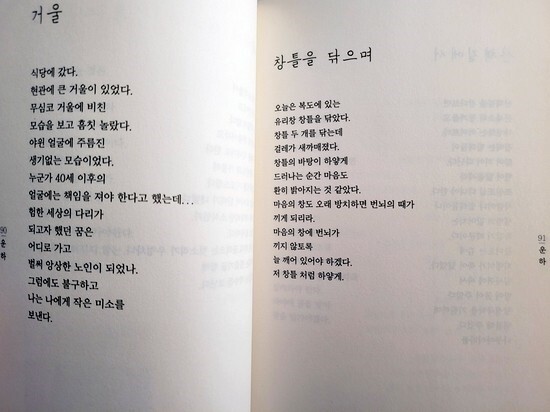 시(詩)를 감상하는 여유를 갖기도 전에 낱낱이 해부하듯이 분석하는 것부터 시작한 학창시절, 그래도 시집을 찾아 읽기도 했지만 고등학교를 졸업한 이후로는 어쩌다 한번 읽게 되었던것 같다. 그래서인지 이제는 분석할 필요도 없이 그 감상을 자유롭게 할 수 있는 요즘 어쩌다 시집을 보게 되면 반갑기도 하고 마음 편히 읽어보게 된다.