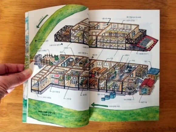 이외에도 여름 산장 생활 속에서 마주하게 되는 동물들을 그려놓고 있다. 참 다양하다. 그만큼 깊은 산 속이구나를 실감나게 한다. 산장의 구조도 보여주고 물을 사용하고 화장실 처리, 온수를 데우는 시스템 등을 잘 알려주기도 해서 단순히 생활 위주가 아니라 깊은 산속 산장의 운영과 관련된 이야기도 읽을 수 있다.