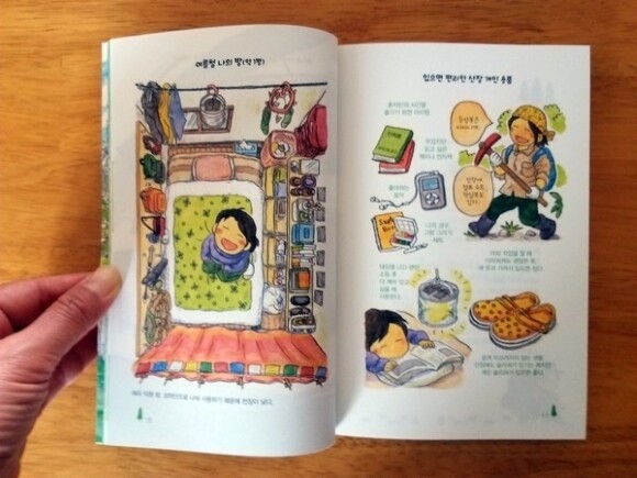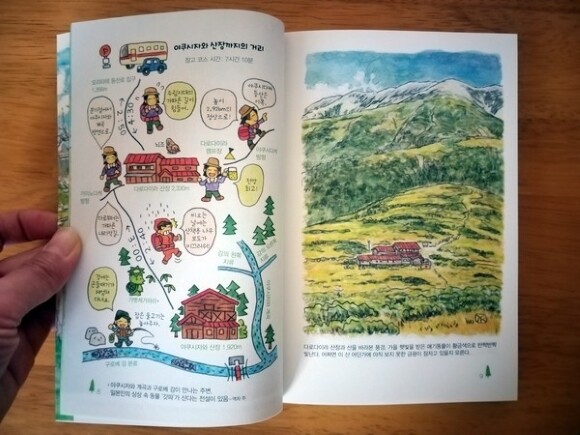 저자는 무려 12년 째 이 생활을 하고 있는데 산장 생활을 하지 않을 때는 이때 번 돈으로 여행을 간다고 한다. 여행지에서는 자신의 전공이기도 한 그림을 그린다고. 책에는 컬러와 흑백의 그림들, 사진들이 나오는데 그림도 상당히 귀엽다.