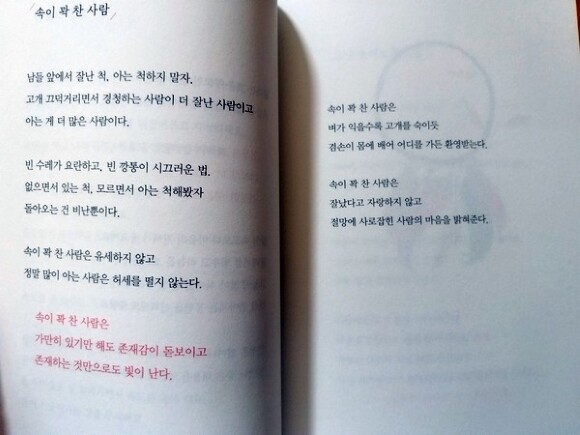 사랑한다고 상처를 허락하지 말 것』이란 제목이 참 좋다. 간혹 사랑에 빠지면 자신의 모든 것을 걸고 상대와 사랑의 감정에 빠지다 못해 오히려 스스로의 존재를 잃어버리는 경우가 있다. 그럴 경우 자존감마저 잃게 되어 이러지도 저러지도 못한 채 상대방의 감정에 끌려다는 경우도 있는 것이다.