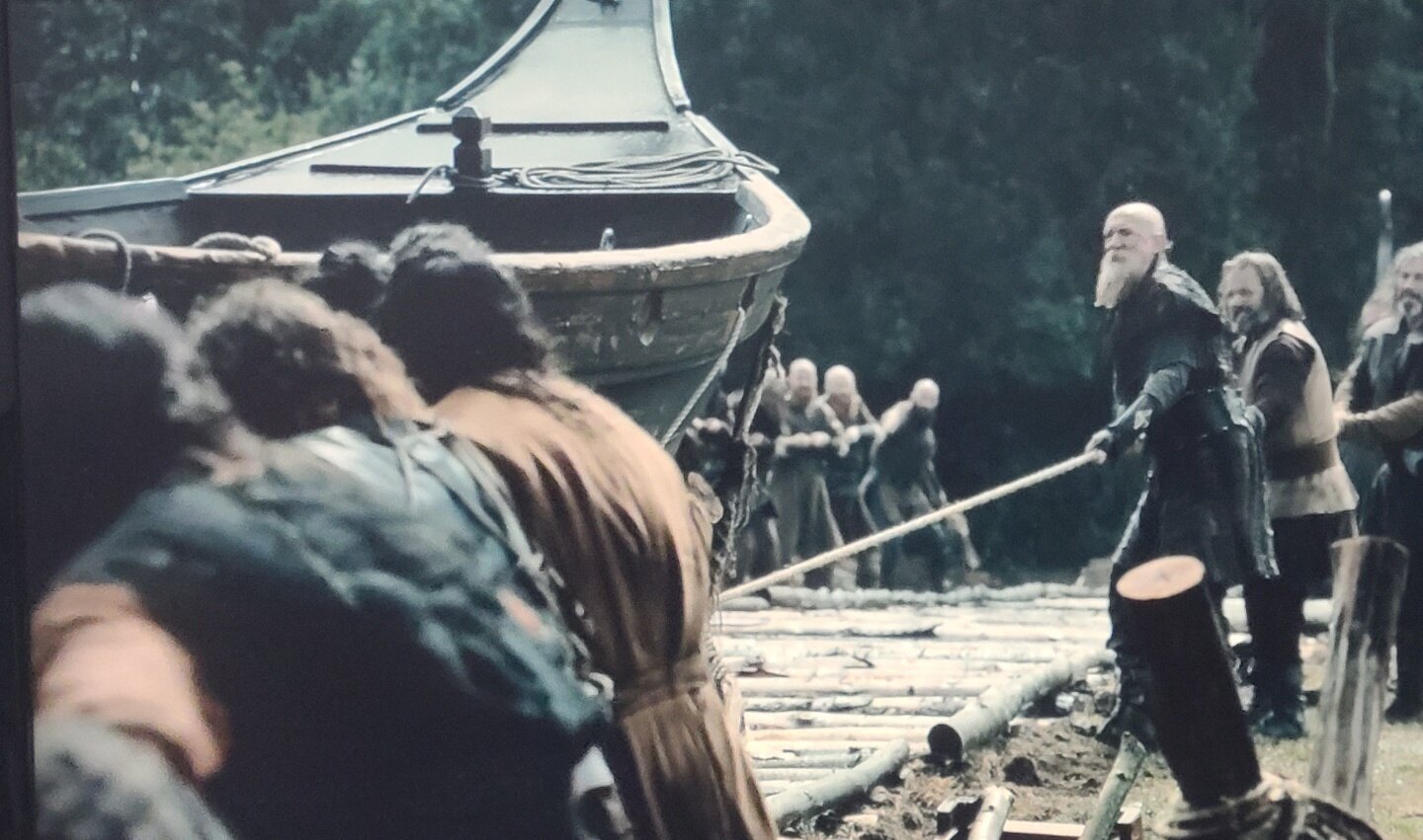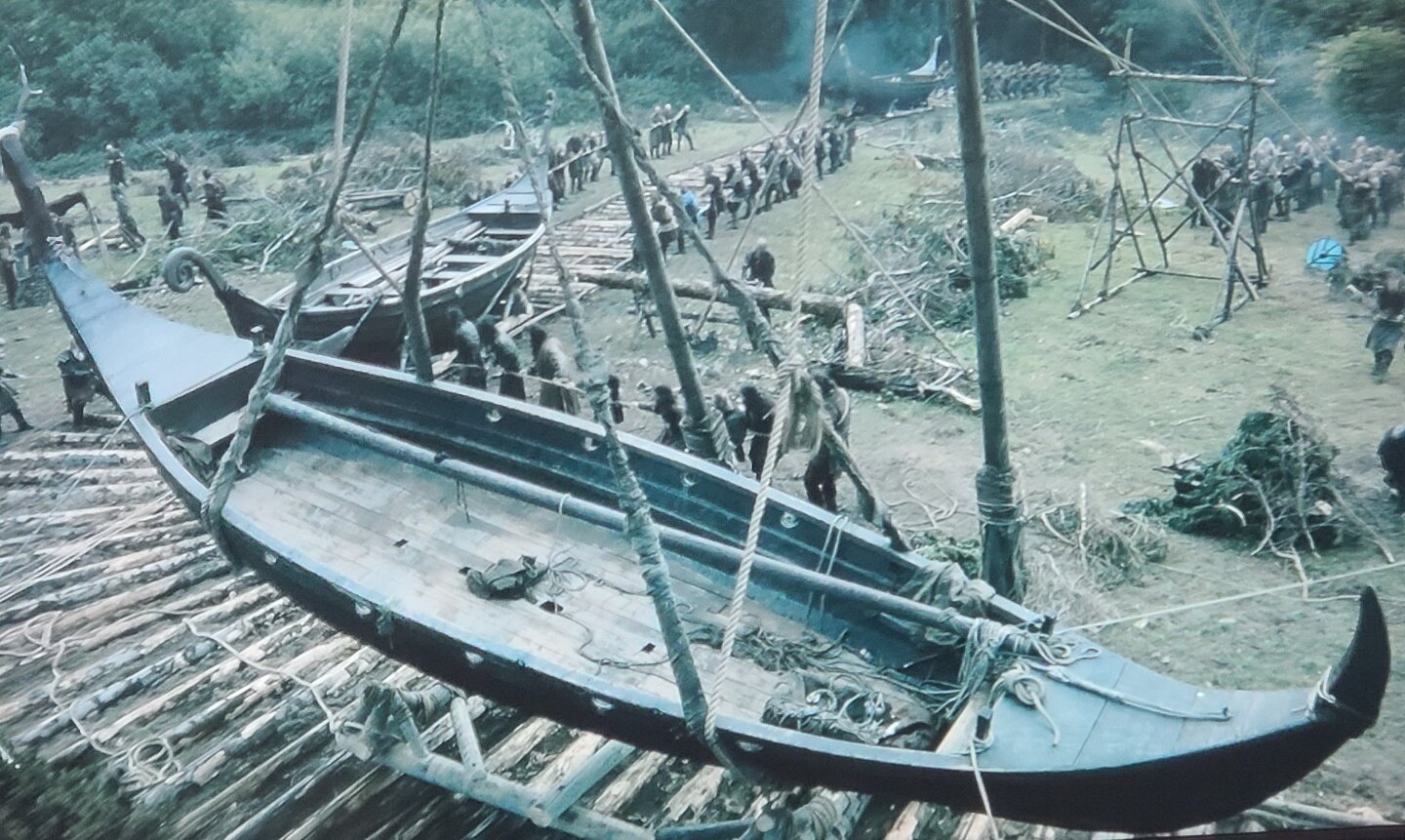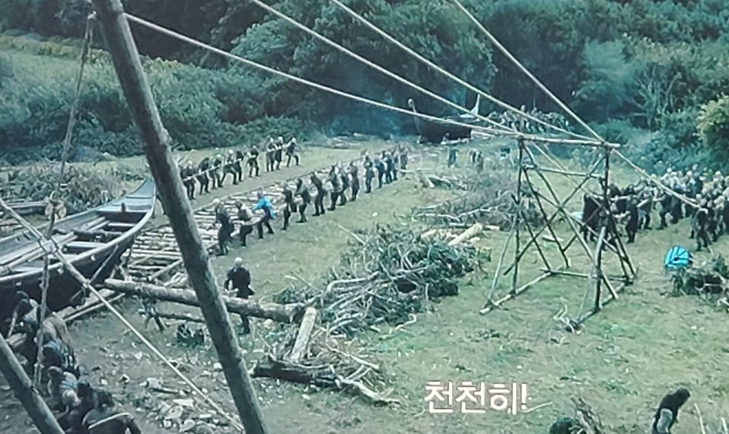 산길을 만들고 배들을 옮겨 최적의 기습 가능한 바다 지점에 다시 밀어넣습니다.