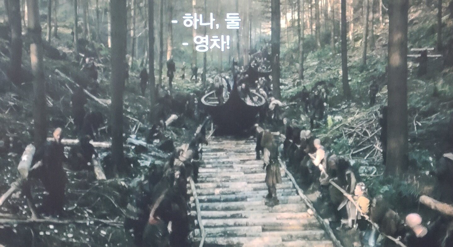 바다 입구가 강력한 쇠사슬로 막혀 있어 바다 절벽에서 산으로 배들을 끌어올립니다.