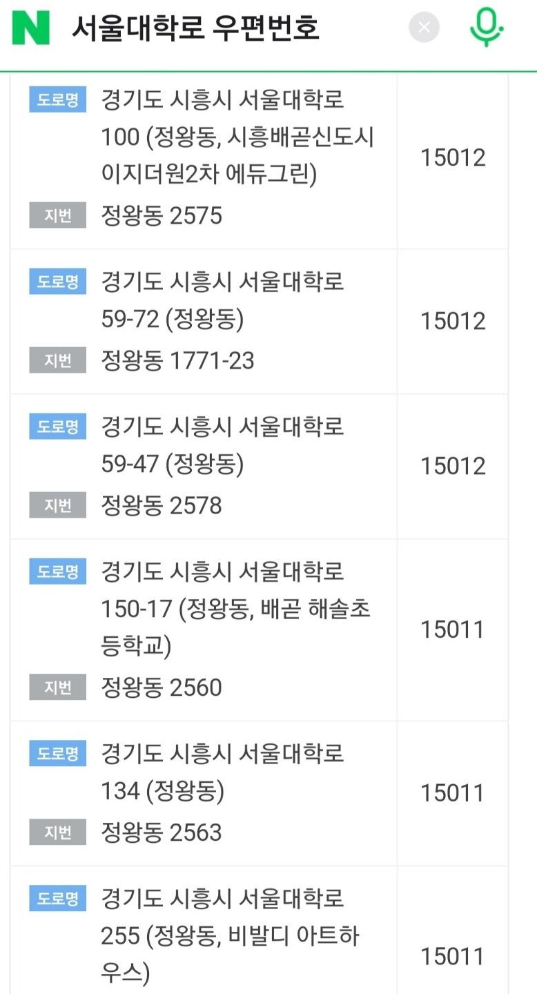 ‘서울대학로‘라고 포털에서 검색하면 경기도 시흥시 정왕동이 나온다.