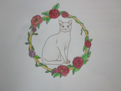 이쁜 꽃링을 테두리 삼아 있는 고양이를 살짝 색칠해 보았어요.