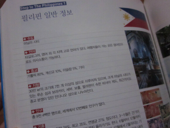 필리핀 각 섬에 대한 정보가 주어지고 필리핀이라는 나라에 대해서 알고 가면 좋은 일반 정보도 책 뒤에 나와있답니다. 물론 영어가 가장 잘 통용된다고 하네요 .그래서인지 책에서는 서바이벌 실전 영어도 실어주었어요 .몇마디 안되지만 이것도 공부해 놓으면 좋을 듯한데요?